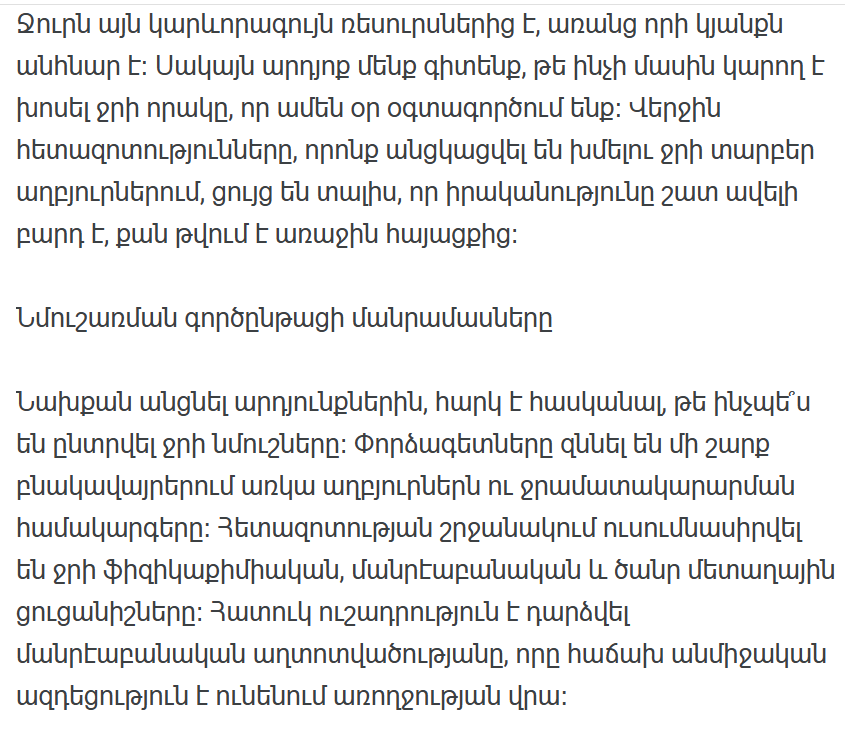 Тяжелые металлы. В ряде проб было обнаружено превышение допустимых норм содержания таких металлов, как свинец и мышьяк. Причиной этого могут быть старые водопроводные трубы и промышленная деятельность в некоторых регионах.