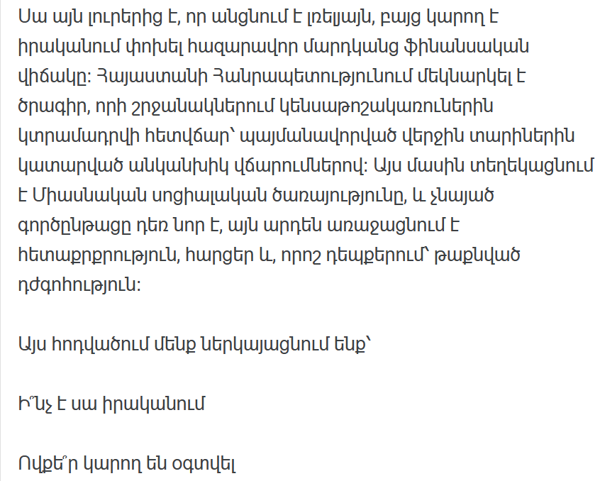 В некоторых случаях, когда пенсионеры получали минимальную пенсию, размер может быть увеличен до 30 000 драмов.