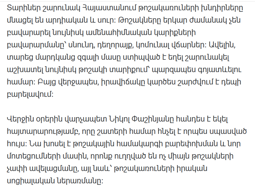 В последние дни премьер-министр Никол Пашинян сделал заявление, которое многим показалось ожидаемой надеждой. Он рассказал о реформе пенсионной системы и новых подходах, направленных не только на увеличение размера пенсий, но и на реальную социальную интеграцию пенсионеров.