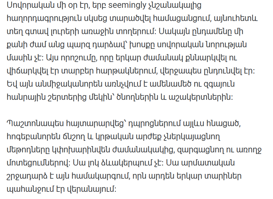 Было официально объявлено, что устаревшие, психологически репрессивные и бесполезные с точки зрения образования методы в школах будут заменены современными, развивающими и здоровыми подходами. Это не просто формулировка. Это радикальное изменение в системе, которая уже много лет нуждается в пересмотре.