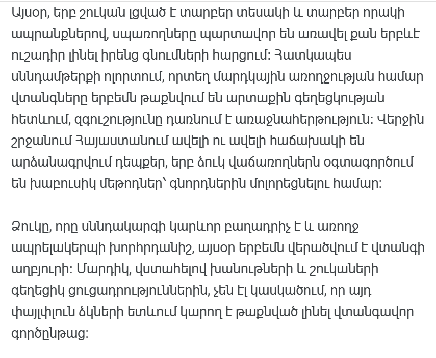 Значительная часть импортируемой в нашу страну рыбы проходит различные виды обработки, которые не только ухудшают природные качества рыбы, но и порой представляют угрозу здоровью человека. Подобные практики часто маскируются под внешнюю красоту, и потребитель остается в неведении.