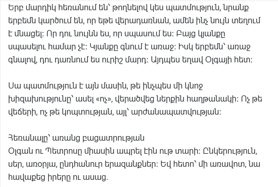 Ольга осталась одна. Боль была невыносимой, тишина гнетущей. Она не понимала, в чем дело, но решила не искать в этом мужчине ничего плохого. Он начал искать себя.