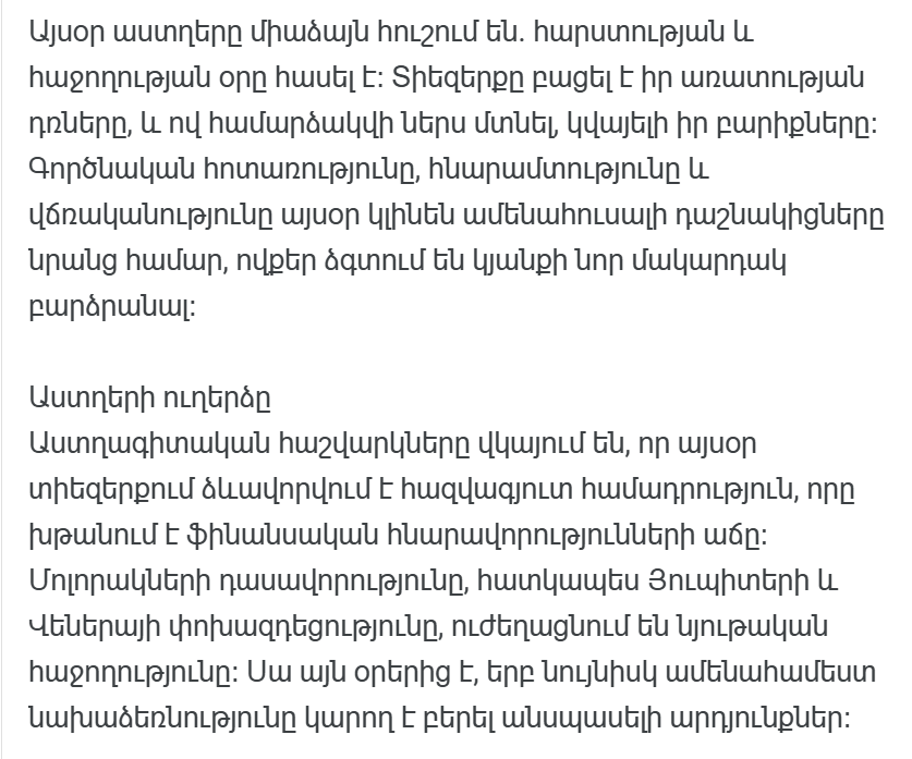 Никогда не недооценивайте силу, которую Вселенная может привнести в вашу жизнь. Сегодняшний гороскоп обещает не только перемены, но и богатство во всех смыслах. Сейчас настал момент, когда каждый маленький шаг может превратиться в большую победу, а каждая мысль может посадить дерево успеха.