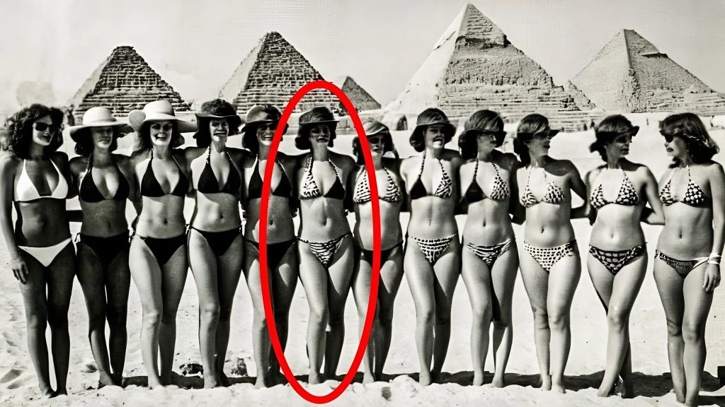 Иногда фотография — это просто момент. Иногда — отражение эпохи. А иногда — вопрос, который не даёт покоя даже спустя десятилетия. Именно таким вопросом стало это фото. Сначала оно казалось обычным снимком из прошлого: группа улыбающихся девушек в купальниках на фоне египетских пирамид. Что тут может быть необычного?