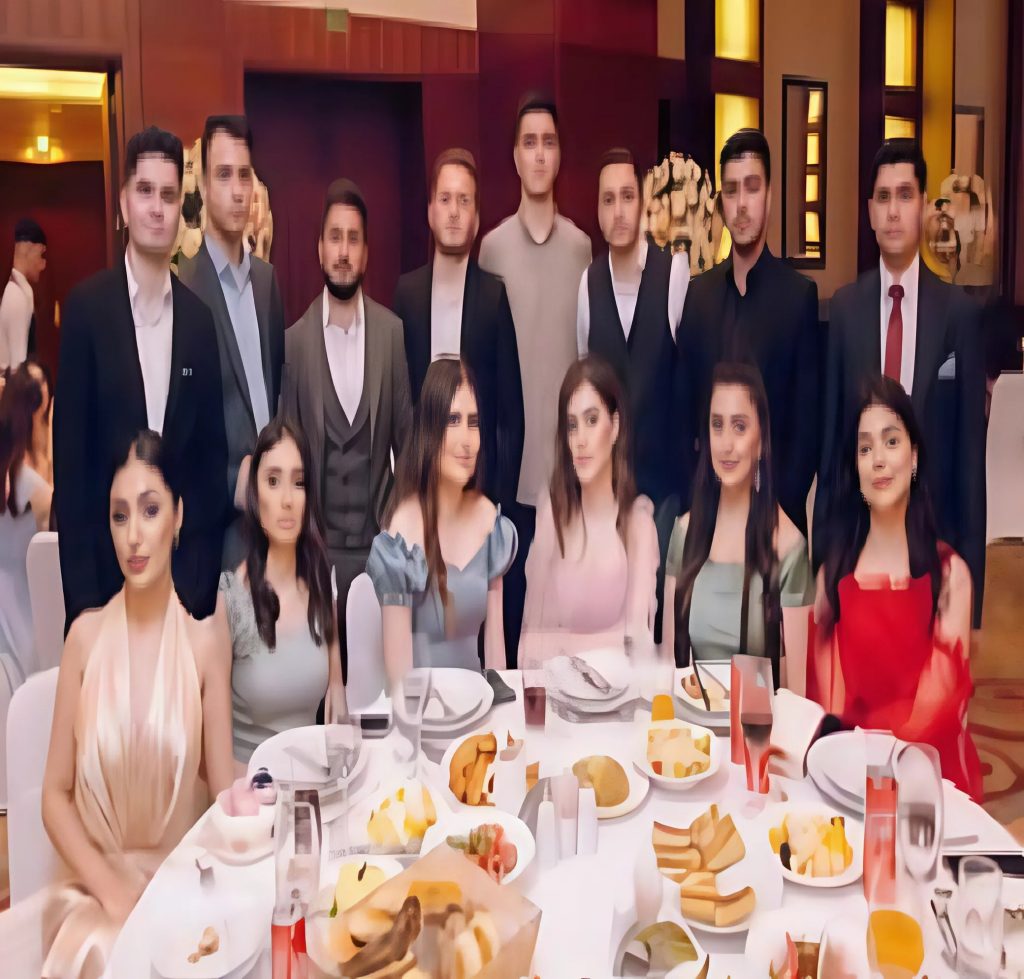 В дорогом костюме, с прямой осанкой, спокойным, уверенным взглядом. За ним — изящная женщина. Его жена.