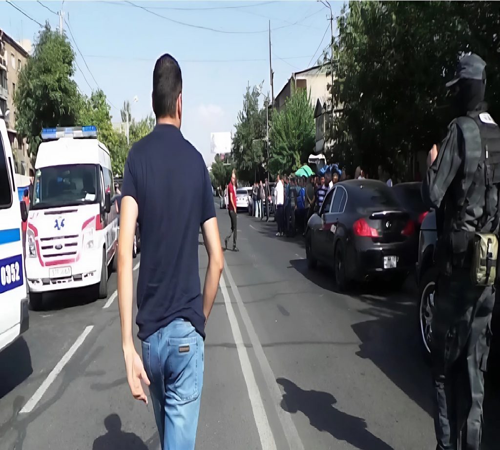 Через 15 минут после сигнала в экстренные службы к месту прибыли наряды полиции, спецотряд «Արծիվ» (Орел), машины скорой помощи, а также кинологи.