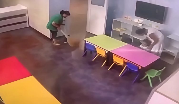 Через мгновение или два раздаются крики. Учительница резким голосом дает указания, заставляет детей встать к стене, и одна из них, по данным видео, девочка 4-5 лет, начинает плакать. В ответ воспитательница повышает голос, добавляя: