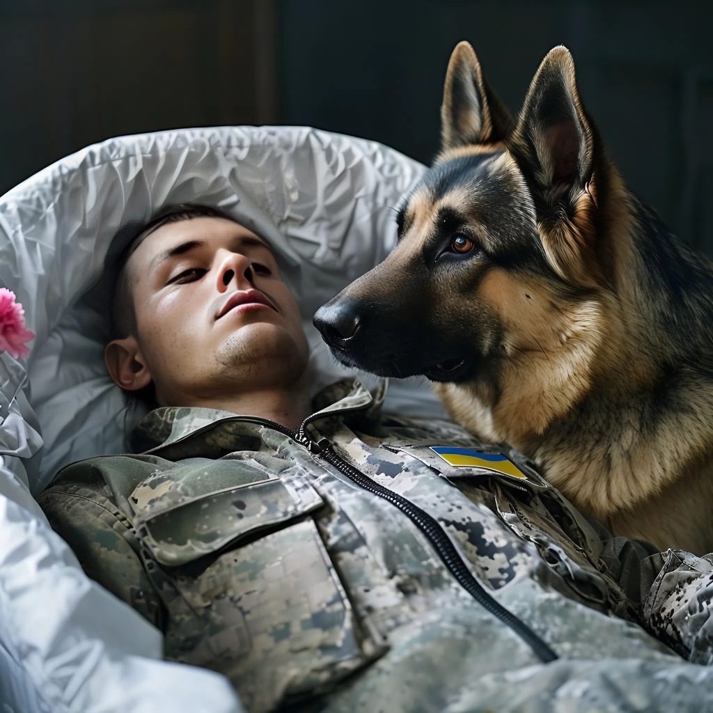 На кладбище воцарилась неописуемая тишина. Лёгкий ветерок гулял по деревьям, слышны были лишь приглушённые крики родных и звуки молитв. Всё было окутано тяжестью печали. Похоронная церемония шла своим чередом: слова, прощальные взгляды, трогательные истории. Однако кто-то сидел, сгорбившись, над гробом, и, казалось, испытывал более глубокую боль, чем что-либо другое. Рекс, немецкая овчарка в чёрном жилете, не отходил ни на секунду. В его глазах была такая печаль и преданность, что даже самые холодные люди не могли сдержать волнения.