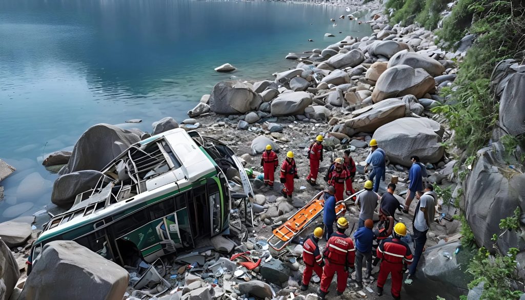 Трагедия произошла около 11 утра, когда пассажирский автобус, ехавший по горной дороге, пытался пересечь мост. Очевидцы рассказывают, что стоял туман, дорога была скользкой, а автобус был полон людей. Некоторые говорят, что они покинули остановку пятью минутами ранее, все сидели спокойно. Ни криков, ни предупреждения. Только внезапный толчок, занос, и автобус съехал с проезжей части.